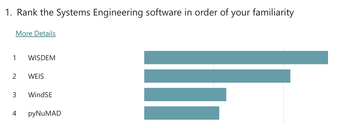 In each workshop, questions were asked about existing and future user support options. As for existing support, attendees noted that they mostly receive help from the model owners via the NREL Forums and GitHub-based forums, and that they also use the documentation and examples as a reference. On future user support, the questions asked attendees to rank support options in order of priority. The questions in each workshop were different, so a direct comparison is not made. However, respondents generally settled on the following ranking: