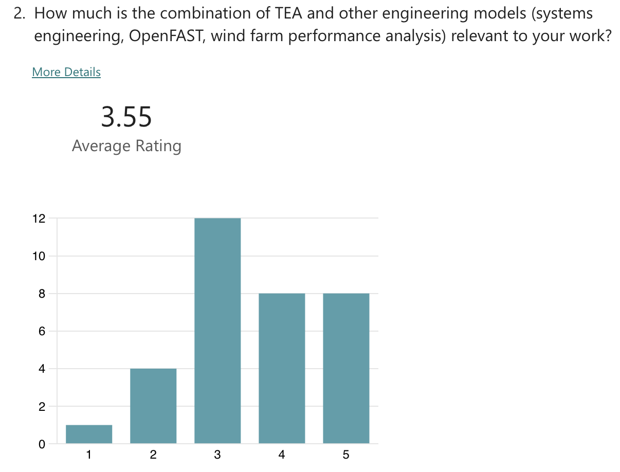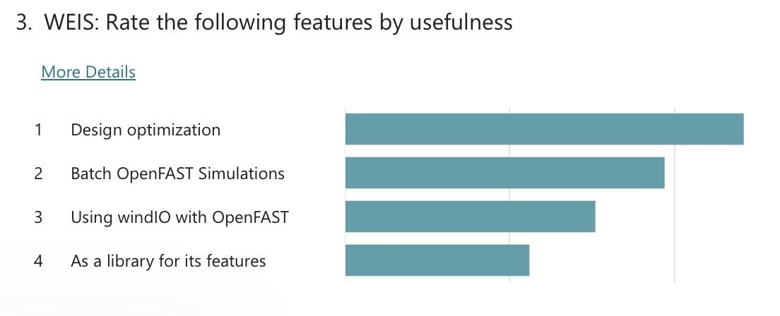 The anonymous feedback included more detailed suggestions. In general, there was an appreciation for the big picture overview of the WETO Software Stack. Respondents also noted that it was helpful to hear about the future roadmap from the model owners directly. The redundancy across workshops was called out as a negative, and many comments suggested to hold workshops for specific software.